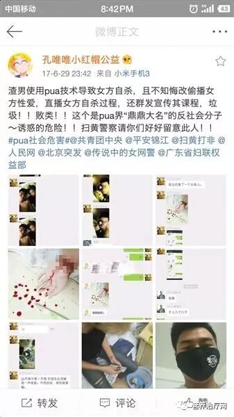 “五步陷阱”目标除了情色还有钱财 “诱惑”的课程全在网上进行,随着课程的深入,教学内容也开始讲授如何心理控制,指导学员如何让对方感情崩溃,失去理性。 除此之外,“诱惑”还教授如何使用暴力征服,“你甚至可以扇她。打了之后让她跪在那儿,可以这样调教。” 孔唯唯告诉记者,向她咨询的一名受害女性,就曾经常被PUA男友掐脖、扇脸等,最后虽离开了PUA男友,却因为这段经历患上抑郁症。 据“诱惑”自述,“五步陷阱”之后,目标除了情色,自然便是钱财了。 “榨取术,就是让女人对你进行疯狂的投资,”诱惑在讲课中,经常炫耀他榨取得到的财物。 孔唯唯说,向她求助的PUA受害女性超过150人。受到PUA伤害的女性的心理创伤几乎是不可逆的,这和普通的失恋不一样,很多受害女性会长期怀疑男性,有仇视、厌恶男性的心理,抗拒亲密关系,需要几年时间才能走出来。 与孔唯唯一起创办“小红帽”公益组织的周曼,就曾是PUA受害者。她说,自己是无意中看到“男朋友”的聊天记录,发现他不仅是PUA学员,还同时交往5个女友,云盘里存了上千张女性照片和聊天截图。 经过PUA课件对比,周曼发现“男朋友”几乎是按照课件操作,一步步让她落入陷阱。在长达半年的时间里,周曼都处于精神崩溃的边缘:无缘无故痛哭、整夜失眠、压抑焦躁;而此后两年,她对身边任何一个男生都抱着极大的排斥、怀疑心理。 导师教唆学员实施“自杀鼓励” “小红帽”公益组织也发现“诱惑”的课程中涉及“自杀鼓励”等恶劣内容,从2017年6月以来就多次在微博曝光。 “诱惑”最后的课程是“自杀鼓励”。 “诱惑”说,自杀鼓励是指通过PUA情感操控后,要让目标有愿意为你死的冲动。 在其传给记者的课件中,就有教授学员如何操控对象自杀的内容。“这样做了之后只会让我们感情更好。”导师在群里说。 向孔唯唯求助的PUA受害女性中,有人患上了抑郁症,有人被传染了性病,有人遭受了暴力,也有被骗了钱财,还有女孩发现自己的照片和隐私,成了PUA团队的教学资料。 “PUA从来不会关注自己的行为会给对方带来多深的伤害。”“孔唯唯说,她接触的一名名叫杨兰的女性受害者,已经有自残行为。 新京报记者联系上杨兰,她只同意用文字交流,“因为自己很久没与陌生人交流过了,紧张、害怕。” 据杨兰自述,她是2014年跟“男朋友”开始交往,但过程中她觉得自己状态不对,上网查询,发现自己的遭遇与PUA反应非常相似。 杨兰背着“男朋友”化名报名了一个PUA组织,发现课程与“男朋友”对待自己如出一辙,更让她惊心的是,这个PUA组织的很多学员,都跟她“男朋友”认识。 之后,杨兰接受了一年心理咨询,在心理咨询师的干预下,杨兰断绝了和那名男子的往来。 “四年没工作、抑郁症哭了三年,如果没做心理咨询,我觉得我根本活不了”,杨兰说,抑郁症严重的时候,她连卧室门都不出去,躺在床上什么也做不了,不吃不睡,胡思乱想。 学员孟云自称也在“诱惑”的指导下,对来北京找他的女孩实施了“控制”。当天女孩给他打了120个电话,都没接,最后女孩给他发了张割腕的图。 “当时我怕真出事,立马就去找到她,带她去医院包扎了。”孟云说,感觉这个过程很邪恶。 “‘情侣’关系让维权变得艰难” 很多PUA的行为难以简单地用法律来界定,更为“情侣”关系的存在,受害人难以通过法律手段维权。 目前,“诱惑”所建的学员群仍然存在,仍有很多学员将自己“诱骗”的聊天记录发到群中,让导师指导如何行动。 孔唯唯认为,向她咨询的150人只占PUA女性受害者总数的很小比例,更多女性不敢站出来,还有很多女性仍被蒙在鼓里。 “她们中很多人是涉世未深的学生,刚毕业参加工作的小白,对于PUA精心布置的陷阱毫无防备。”孔唯唯说,除了为受害女性提供心理疏导,还涉及法律维权问题。 但孔唯唯还认为,受害者维权同样艰难,很多PUA的行为难以用法律手段界定,PUA打着“情侣”关系的伪装,很多受害女性难以通过法律手段维权,“小红帽”能做的,更多是揭发这种丑恶现象。 为此,“小红帽”一直在网络曝光不良PUA。孔唯唯本人也经常受到PUA的恐吓、威胁。 在“小红帽”公益组织两年多的努力下,部分PUA也发生了改变。孔唯唯称,已有多家PUA或情感咨询公司,组成行业自律小组。 记者看到,这个自律小组正在撰写的约束条款包括,“禁止带有色情、暴力、传销等违法内容”,“禁止泄露隐私,包括聊天记录、照片和个人信息”。 孔唯唯总结了一套女性预防不良PUA的伤害的方法:遇到前,保持警惕;遇到时,保持清醒,采取智斗;遭受伤害,向亲人、朋友、政府有关部门(例如妇联)、相关社会组织求救。 鼓励自杀或涉故意杀人罪 法律人士称,分享群发隐私照、教授骗财骗色伎俩,甚至自杀鼓励,这不仅挑战了社会伦理,更涉嫌违法犯罪 对于类似“XX军团”PUA组织的行为,北京市京师律师事务所张新年律师表示,此类欺骗甚至鼓动他人自残的行为,显然违背了公序良俗和法律规定。一方面,对于挑战社会伦理的不端行径应给予道德上的谴责,另一方面,对于其中侵犯人身、财产权利,妨害社会管理的行为,应视情节之轻重,承担相应的法律责任。 “这个PUA组织的相关行为,构成民事侵权、治安违法乃至涉嫌数罪。”张新年律师表示,PUA组织分享与所谓“猎物”的聊天记录、床照、自残照等,传播性爱视频、图片,教