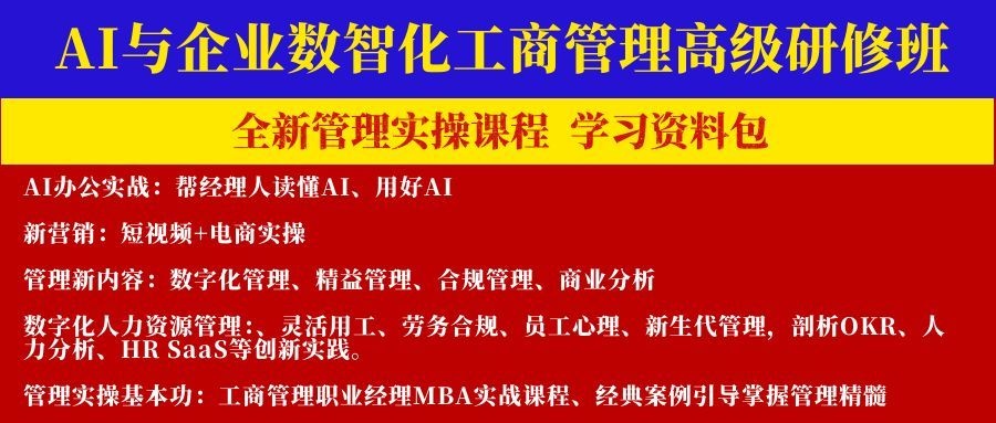 99元职场成功学: 底层员工晋级管理者实操课:工商管理实战班 上午学下午就能用的实操课比证书更有用 尽管经济形势起伏不定,但总有那么一些职业能逆境而上。关键是要发掘自己的优势,不断提升自己的技能,这样无论经济如何,你都能站稳脚跟。工作难寻,买卖难做,创业艰辛更需要管理咨询师帮您理清思路,走出困境。职业成功学即是一套实操速训课程,又是专家1对1的咨询辅导。 在人工智能(AI)与大数据技术的驱动下,全球正加速迈入数智化时代。AI作为引领新一轮科技革命和产业变革的战略性技术,已深度渗透至企业生产、运营、管理的各个环节,重塑商业逻辑与竞争格局。麦肯锡研究表明,成功实现数智化转型的企业,其运营效率平均提升20%以上,市场响应速度提高30%,在降本增效、创新商业模式方面展现出显著优势。然而,技术应用壁垒、战略规划缺失、组织架构滞后等问题,却成为众多企业转型路上的“拦路虎”,亟需系统化的知识赋能与实战指导。 【授课方式】 函授学习(不影响工作、生活)、1对1管理辅导 采用国际通用3结合的先进教育方式授课(远程函授+教学网盘自修+专家集中企管辅导在线答疑)视频、课件都提供下载权限、可以反复学习,不断提高,新课持续更新免费学习。 【学习期限】 3个月(允许有工作经验学员提前毕业,毕业后仍持续辅导2年) 【收费标准】 全部费用99元 函授学习为你节省了大量的宝贵的学习时间。 费用包含:企业管理咨询辅导费99元、职业生涯辅导、持续学习辅导等全部费用,不再另收其他任何费用。 1、对管理知识感兴趣,具有简单电脑操作能力,有决心学好实战知识的各界学员均可报名学习。招生不限学历(我们更注重通俗易懂的实战教育); 2、具备相应实际工作经验的学员允许提前毕业。 3、年龄在20-55岁之间的各界管理知识需求者均可报名学习。 【教程特点】 1、完全实战教材,注重国际企业的实战管理方法与中国管理背景完美融合,关注学员实际执行能力的培养; 2、对学员采用1对1顾问式教学指导,确保学员顺利完成学业、胸有成竹的走向领导岗位; 3、互动学习(专家、顾问全天接受在线咨询,第一时间回答学员的提问和咨询),学员不仅可以就学习中遇到的难题进行咨询学习,在实际工作中遇到的企业难题也可以与指导教师进行沟通和交流、寻求解决方案。 【主办单位】 哈尔滨美华企业管理有限公司(前身:美华管理人才学校成立于1995年:是国内最早举办MBA实战教育的专业化办学单位之一。美华人侧重于把复杂的知识简单化,深奥的理论通俗化,迄今为止,已为社会培养“能力型”管理人才近10万余人,并为多家企业提供了整合策划和企业内训。办学多年来,美华人独特的教学方法,先进的教学理念赢得了社会各界的高度赞誉和认可) 【指导教师】 徐传有导师等专家顾问全程教学辅导。 【咨询电话】13684609885 【咨询教师】王海涛 王耀辉 郑毅 【官方网址】 www.mhjy.net 【报名须知】 1、在线报名(http://mhjymhjy.mikecrm.com/P155Rs)或者报名登记表下载填写后 发电子邮件至 xchy007@163.com 2、学员接到回复邮件后,请及时办理学习手续。(3日内)交纳企管辅导费并电话(微信)通知确认,以便于收费当日办理手续(收费当日,即时就可以免费开通网络学院,获取更多赠课,并特快专递教学资料、收费票据) 3、报名时无需提交相片,请在毕业提交试卷同时补交4张2寸蓝色背景的相片和一张身份证的复印件。 【缴费方式】企业管理咨询业务卡(支持网转、柜台办理和自动取款机办理)(如柜台办理请携带本人身份证到银行办理) 企业帐号:562080100100076073 账号户名:哈尔滨美华企业管理有限公司 开户银行:兴业银行 哈尔滨新阳支行 咨询微信号 122285053 (经理圈)